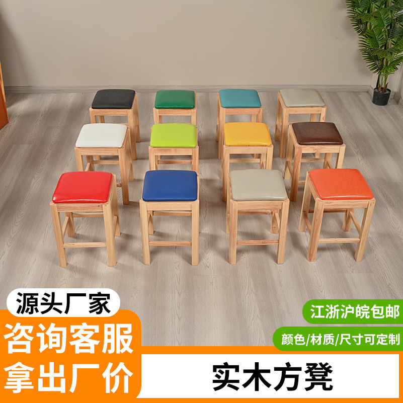 業務用スクエアスツール、ケータリング、軽食、麺類、朝食、ミルクティー、バーベキュー、ハンバーガー、ファーストフード店、背もたれのない無垢材スツール、家庭用