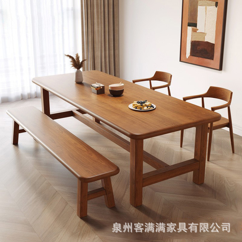 無垢材ウォールナット色のダイニングテーブル家庭用テーブルと椅子の組み合わせ小さなアパート賃貸住宅モダンなシンプルな長方形のダイニングテーブル卸売