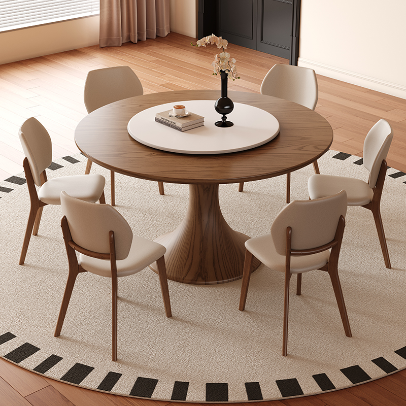イタリアのライト高級ダイニングテーブルと椅子の組み合わせホテルモダンラウンドテーブルシンプルなラウンドロックプレート小型家庭用ターンテーブルダイニングテーブル