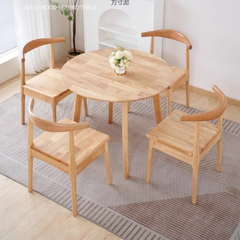 小さな丸テーブル無垢材の色のダイニングテーブル家庭用小さなアパートシンプルなダイニングテーブルケータリング商業バルコニー商談テーブルと椅子セット