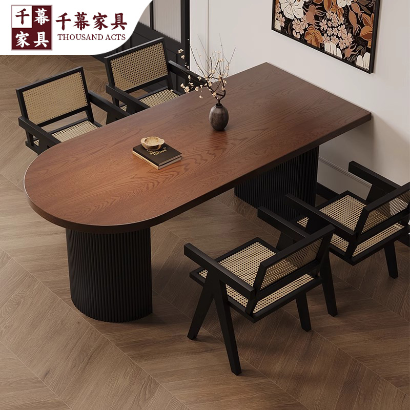 無垢材のダイニングテーブル、モダンでシンプルな小さなアパートの長方形のダイニングテーブルと椅子の組み合わせ、家庭用ダイニングテーブル、ログスタイルのロングテーブル卸売