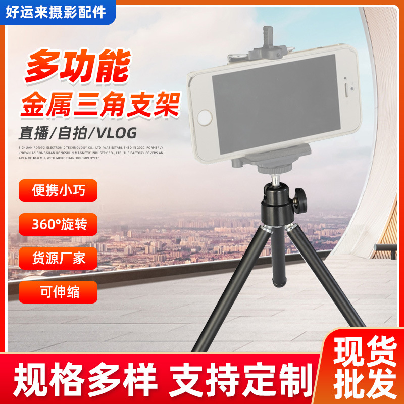 ミニ携帯電話三脚デスクトップ撮影二節伸縮アルミ管三脚金属ヘッドmini加算スタンド