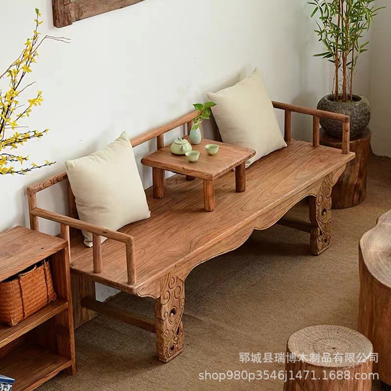 古いニレ材の新しい中国風羅漢ベッドホテルB&B無垢材ベッドリビングルームシンプルソファ禅古いニレ材ベッド