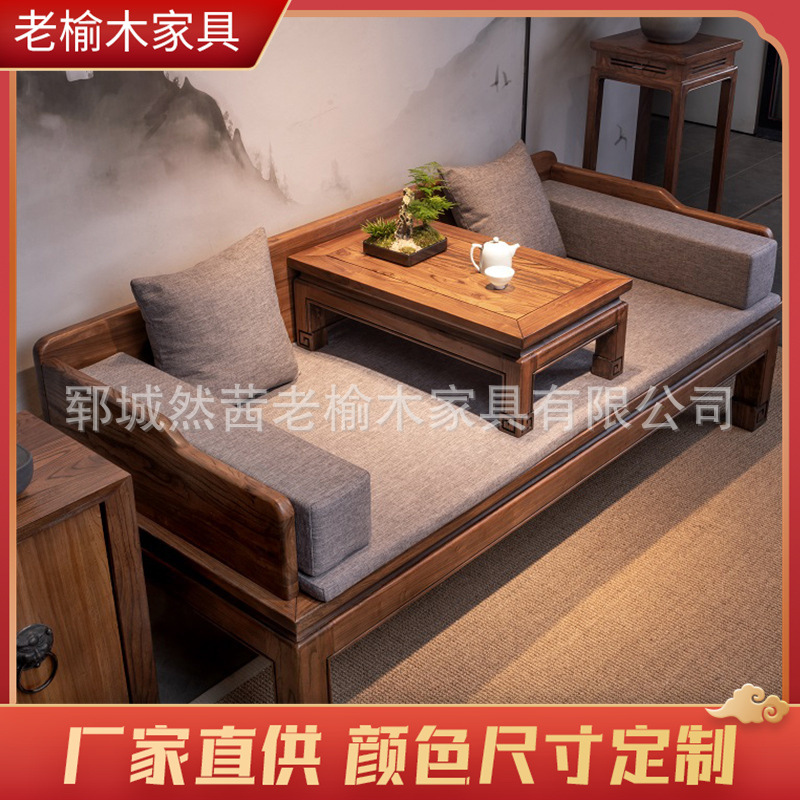禅意新中国式無漆老楡木羅漢床禅意レジャー美人畳レトロ古実木ソファーベッド