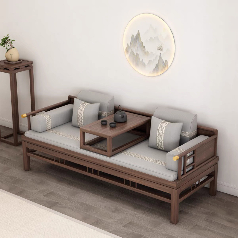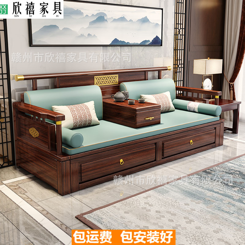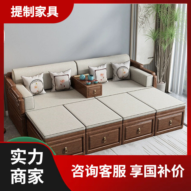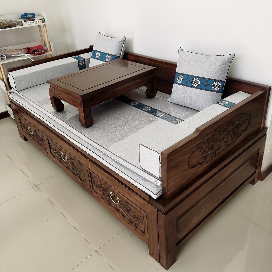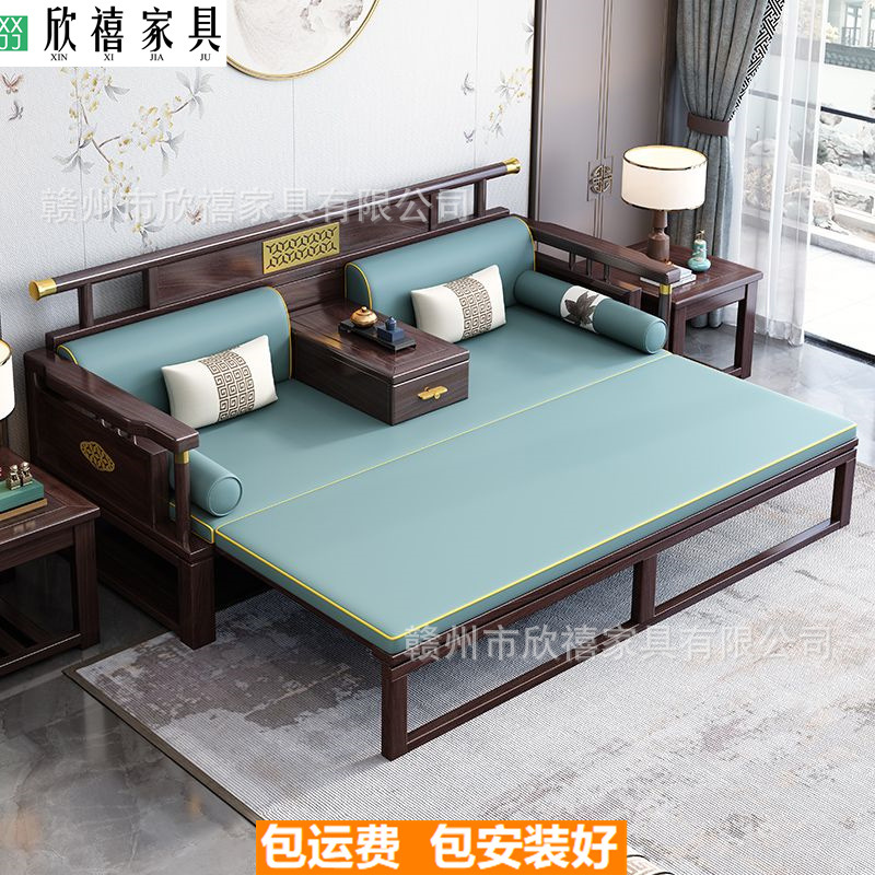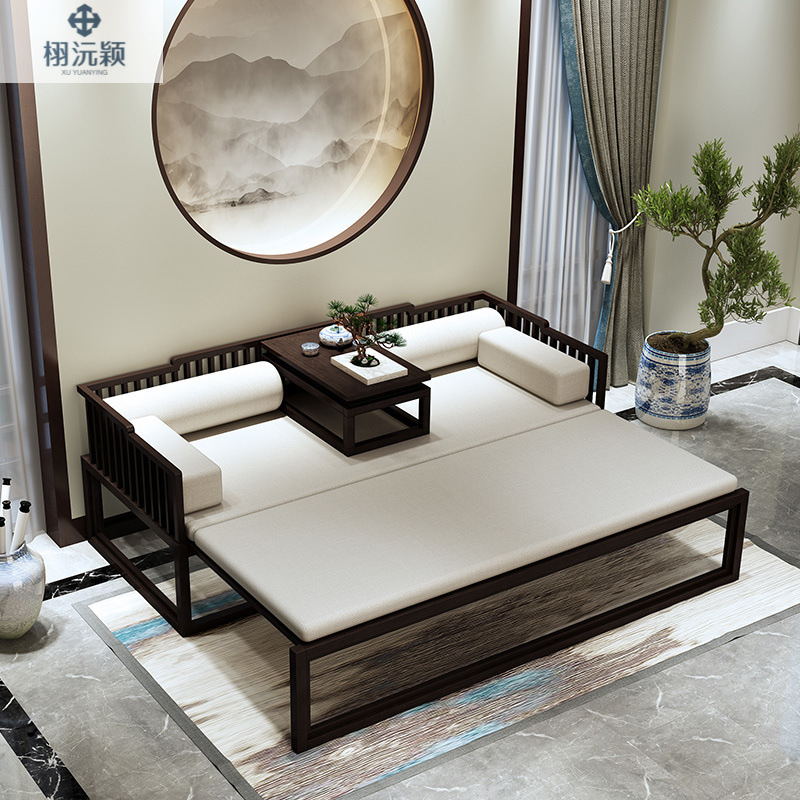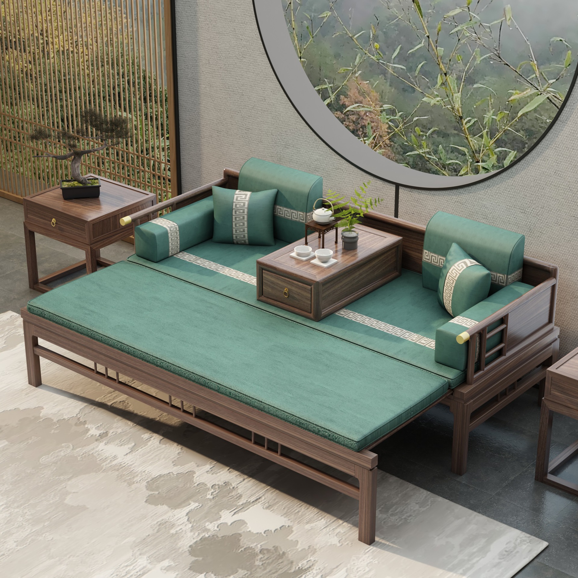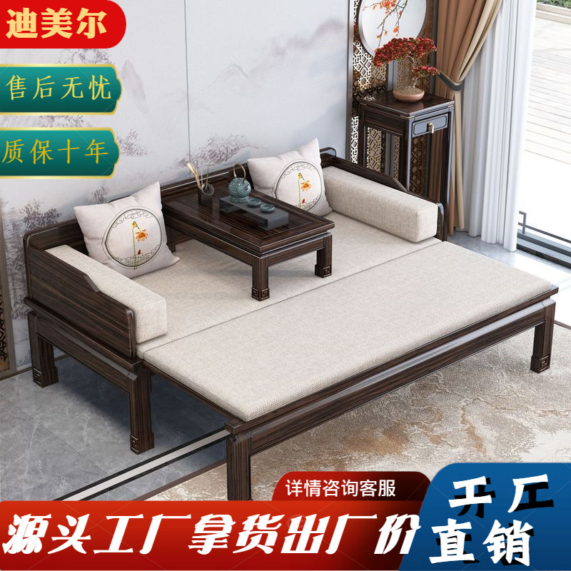 南米クルミの新しい中国風無垢材羅漢ベッドリビングルームプッシュプル一体型収納可能なデュアルユースソファベッド新しいスタイル
