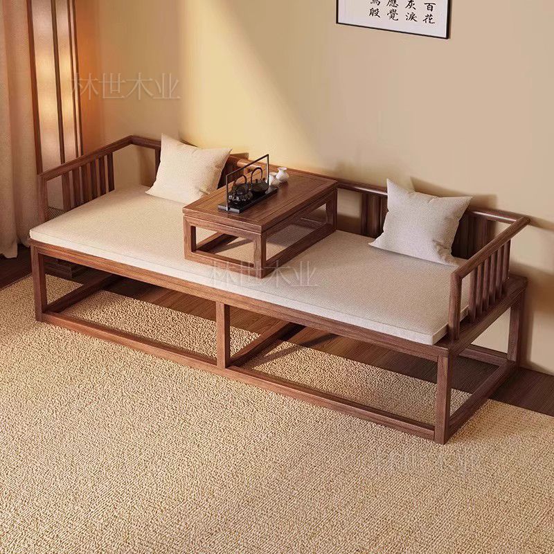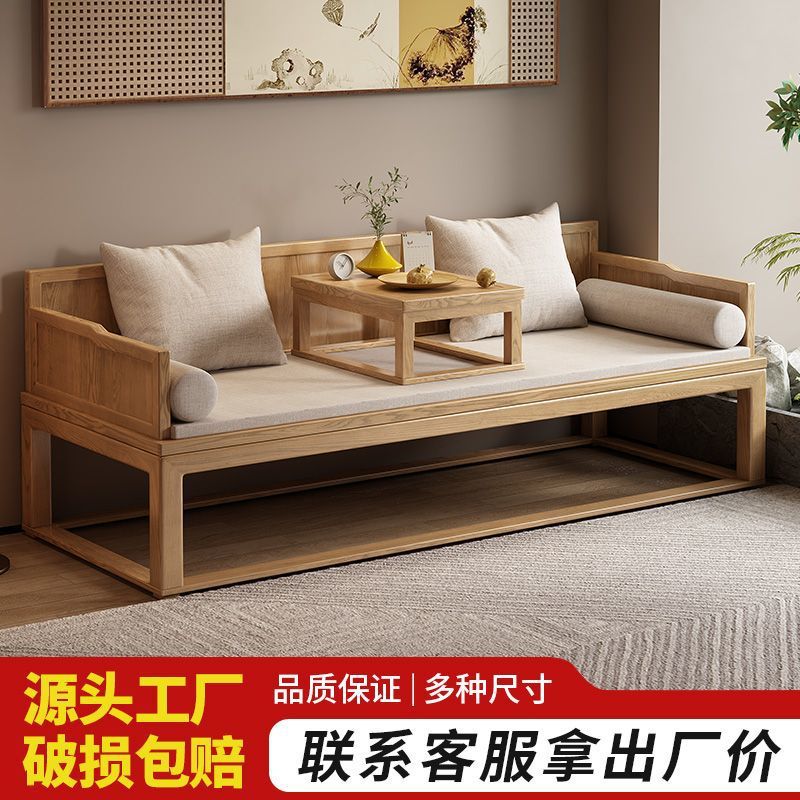 ナラ材羅漢ベッド無垢材新中国風羅漢ソファベッドリビングルームアンティークベッド古代スタイルのロングソファベッドシンプルな禅スタイル