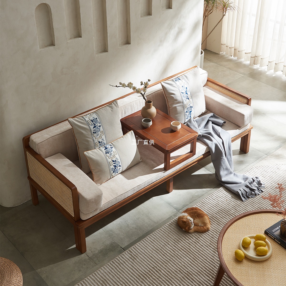 籐ソファリビングルーム無垢材羅漢ベッド組み合わせ小さなアパート新しい中国風アッシュ材引き出し伸縮式スリーピングベッド