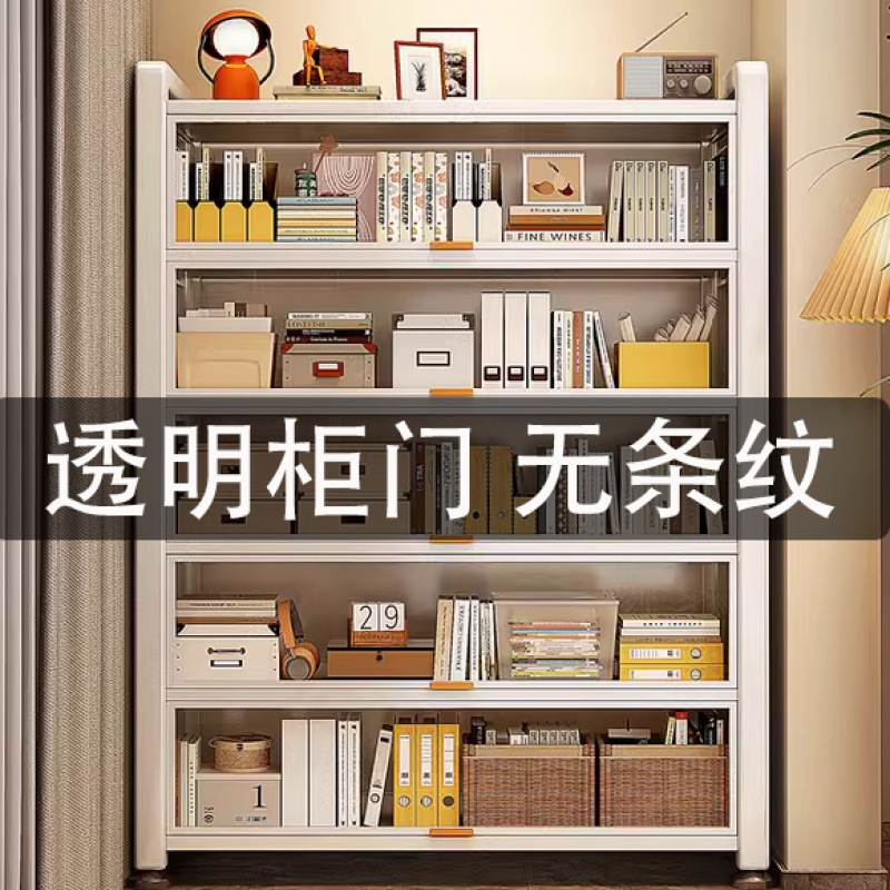 家庭用鋼製本棚ガラス扉付き子供防塵本棚リビング収納棚鉄芸棚