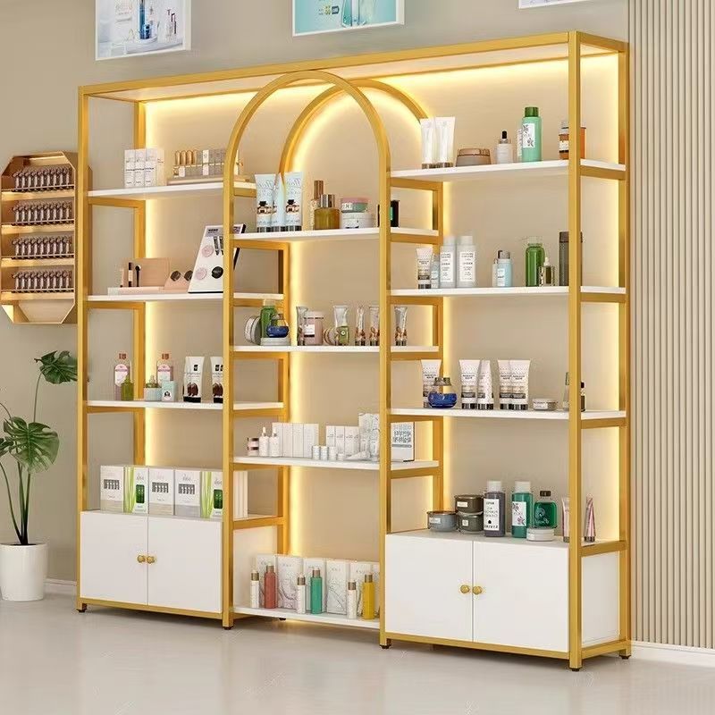 化粧品収納ラック床置き美容室ディスプレイキャビネット多層マニキュアディスプレイラック多機能製品ディスプレイラック
