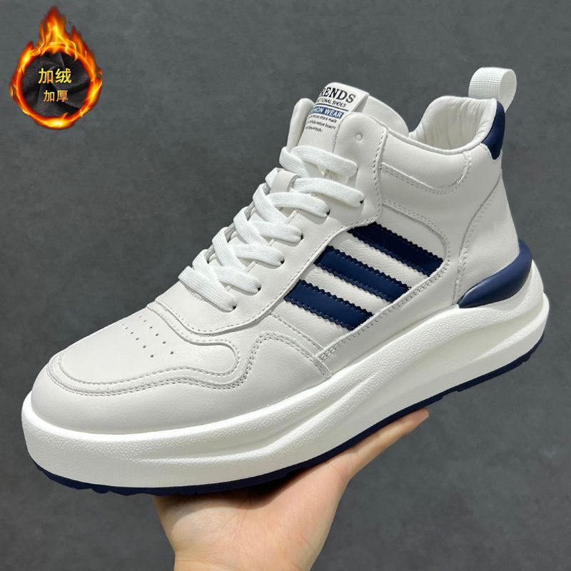 高組男靴冬にベルベット保温運動カジュアルシューズの流行は青年ファッション板靴真皮白靴
