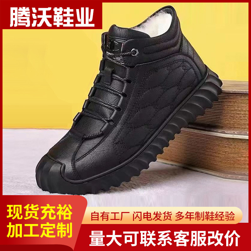 2025年冬新作 本革 レースアップ ハイカット 快適 暖かい 厚手ウール カジュアル メンズシューズ 中綿靴 メーカー卸売