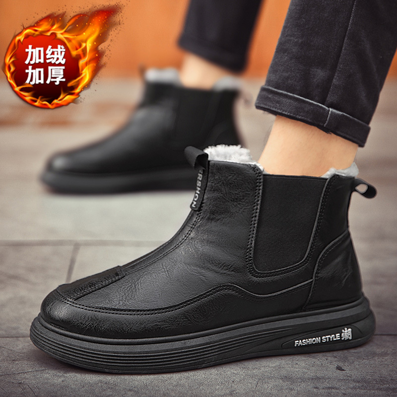 男性靴2024秋冬の新型男性靴のサイドファスナーと保温綿靴チェルシーブーツの大きいサイズ46