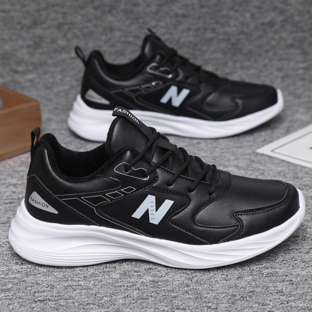 カップルモデル2024冬カジュアルシューズ男性靴皮面防水ベルベット保温靴軽量ランニングファッションスポーツシューズ
