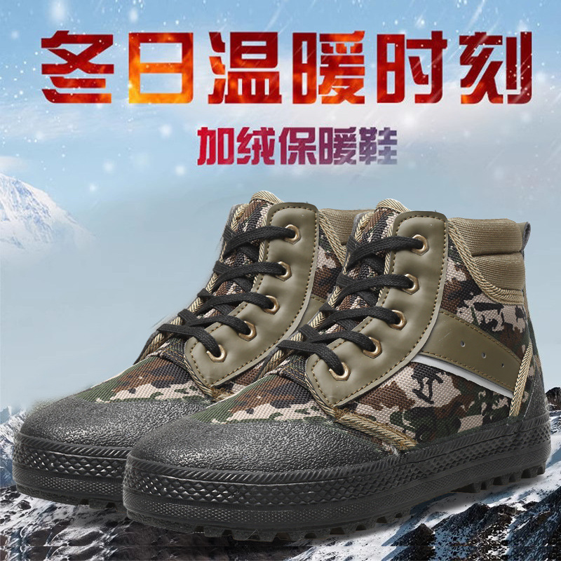 冬の雪の零下に厚い男性靴とベルベットの保温綿靴の屋外労働保護靴工事現場の仕事労働保護綿靴の女性