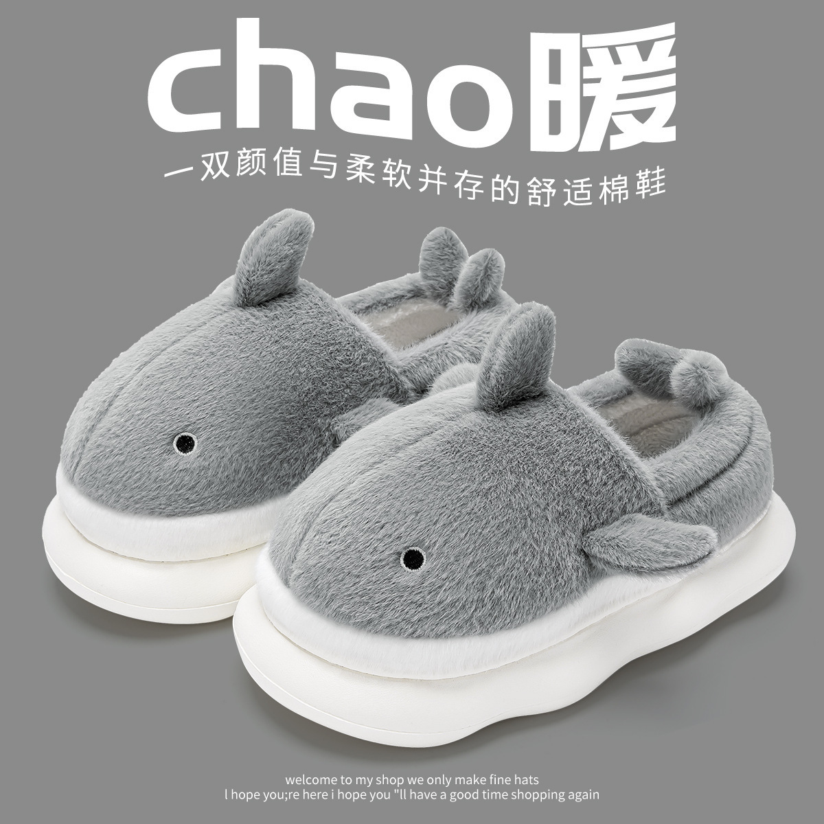クジラの綿のスリッパの男性の秋冬の室内の部屋の滑り止めのベルベットの保温のカップルは足の綿の靴の女性の外で着ます。