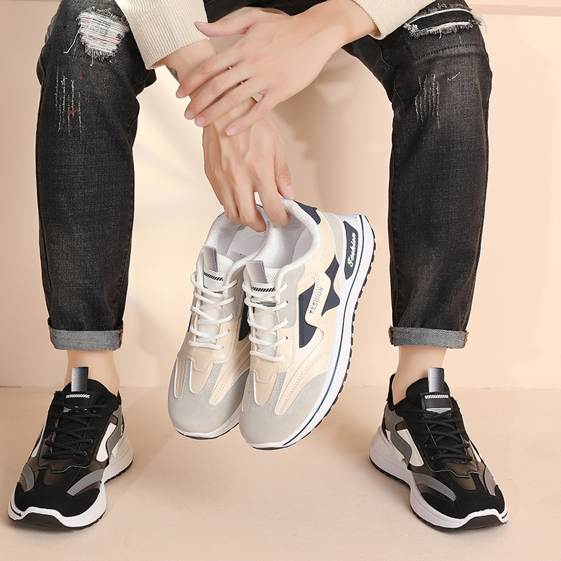 2024 秋と冬の新メンズトレンディな靴革本物のカジュアルシューズトレンディなソフトソール通気性と耐摩耗性スポーツ綿の靴