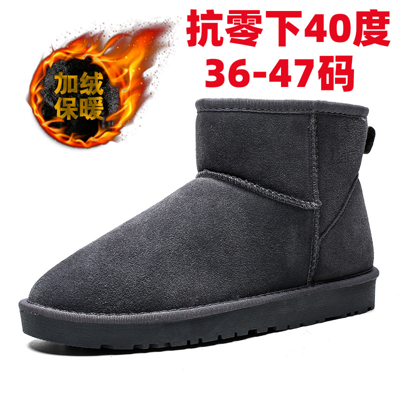 綿靴男2023冬の新型ベルベット保温戸外ショートブーツ滑り止め真皮ウール中高齢者父靴