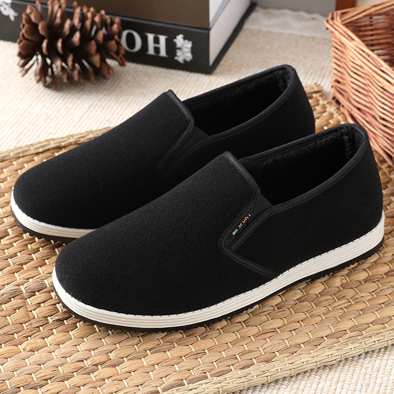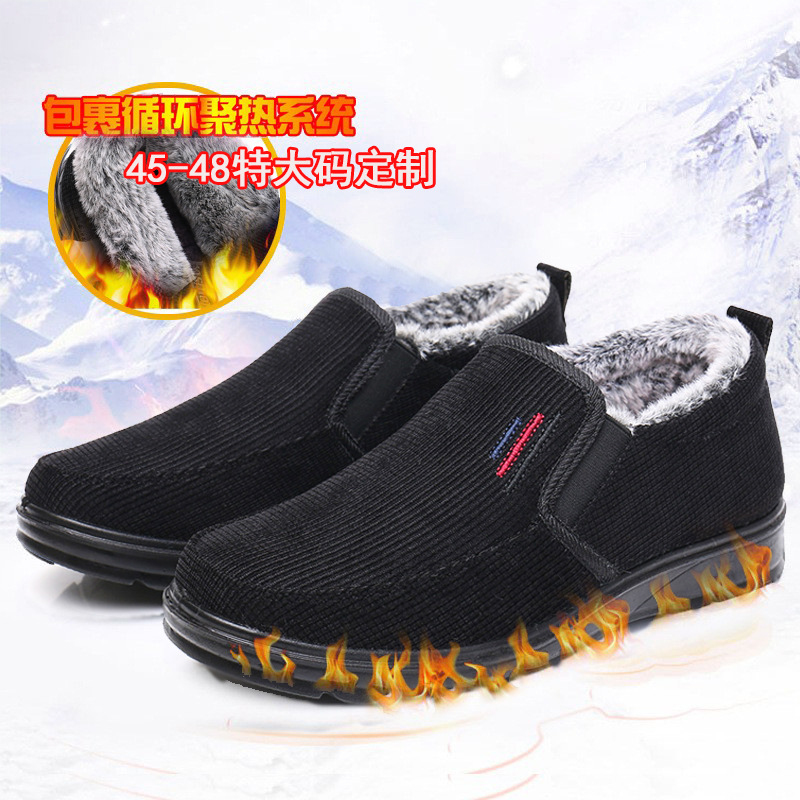 クロスボーダーの男性の特別サイズの綿の靴とベルベットの厚い保温の柔らかい底の中で高齢のお父さんの靴のカジュアルな古い北京の布の靴