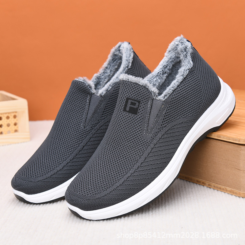 綿入りの柔らかい底の老人靴、男性用、中綿入り、中毛皮入り、高齢者向けウォーキングシューズ、滑り止め、保温、お父さん用、冬用スノーブーツ