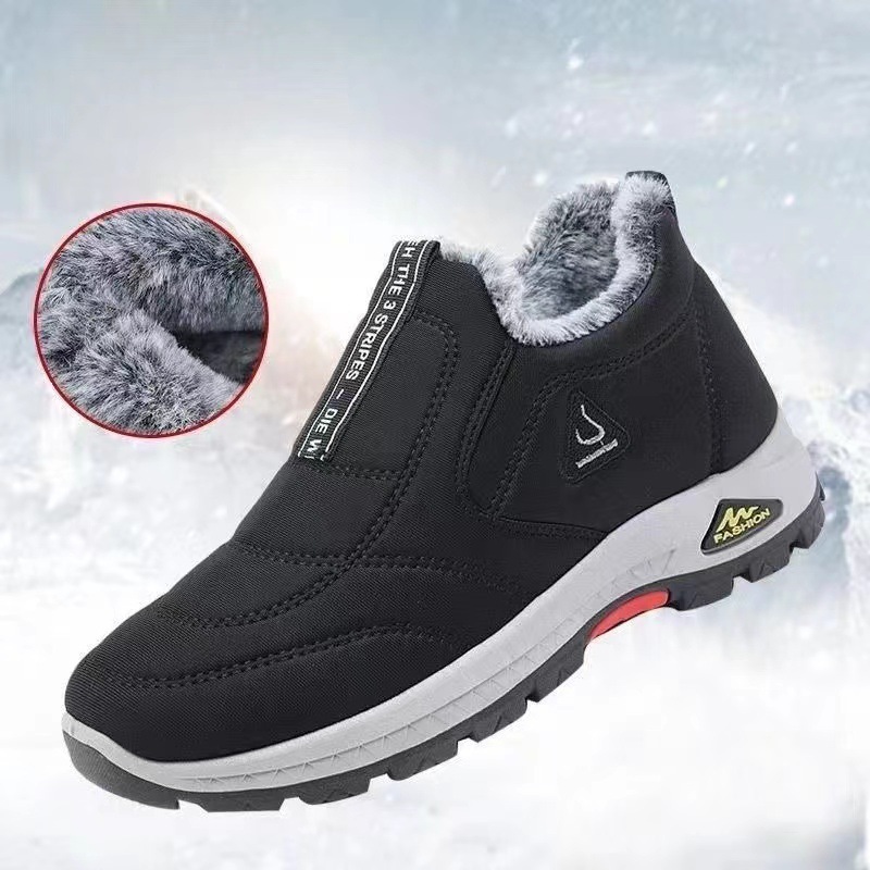 冬用メンズ裏起毛厚手暖かい綿靴、中高年のお父さん向け綿靴、滑り止め耐摩耗性メンズスリッポン綿ブーツ
