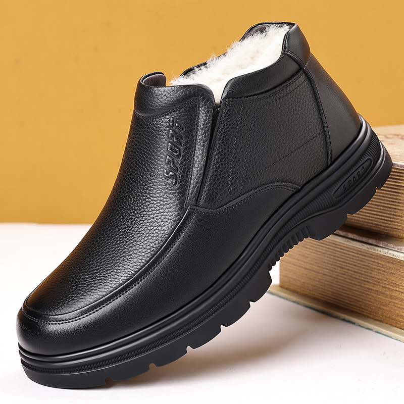 老人綿靴男性冬保温ベルベット真皮牛革冬男靴中高齢者皮靴父靴