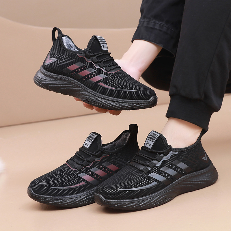 冬に綿を入れた男性のカジュアルシューズの通気性運動ランニングシューズの柔らかい底の潮流は軽やかに綿の靴を編んで代行します。