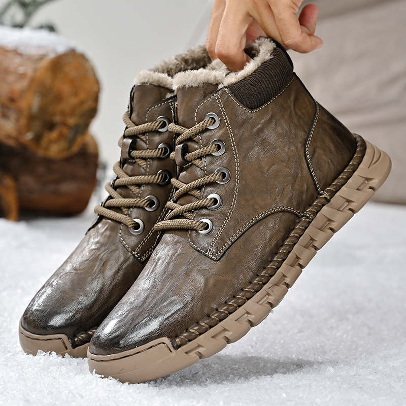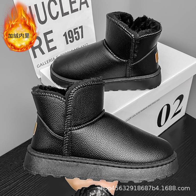 男性用冬用ファッションカップルスタイルの綿靴、ベルベットの厚みのある暖かいショートブーツ、革の防水スノーブーツ、クロスボーダーハイトップシューズ