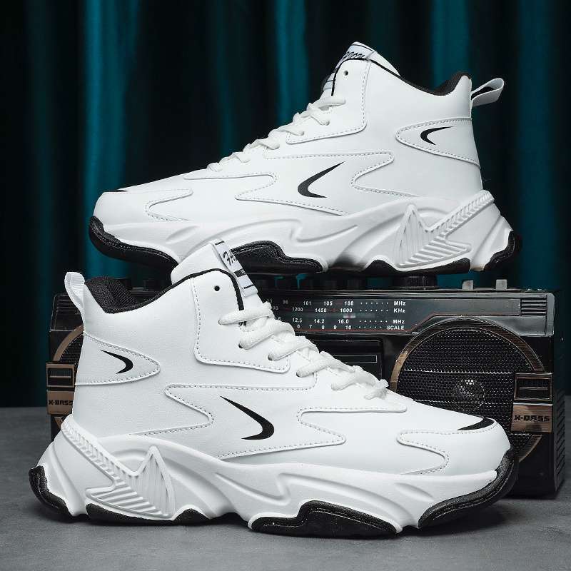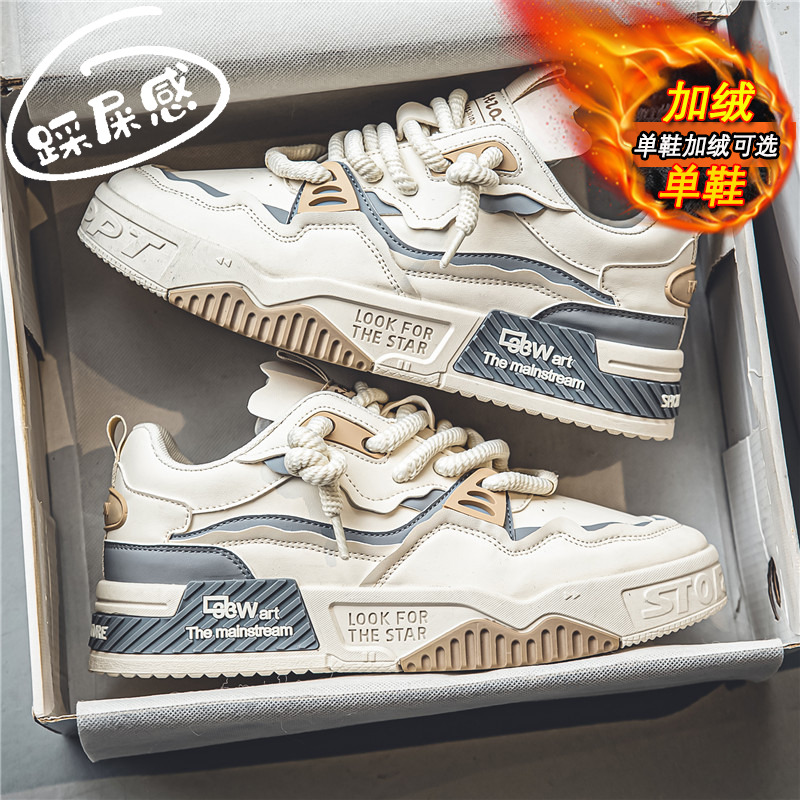 紳士靴秋と冬の新スタイルベルベットハイトップスポーツカジュアル白靴メンズトレンディな綿の靴厚底お父さんトレンディな靴
