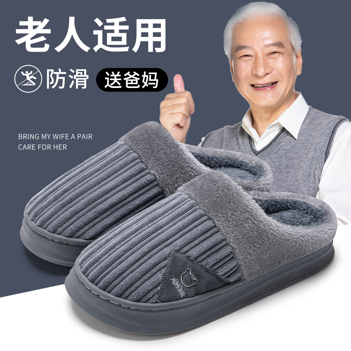 高齢者綿スリッパ男性秋冬2024新型ベルベット保温厚い底滑り止め綿毛綿スリッパ男性モデル