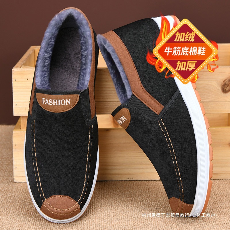 冬のベルベット男綿靴高齢者綿靴男の厚い底の大きいサイズの父靴老人靴ベルベット平布靴男
