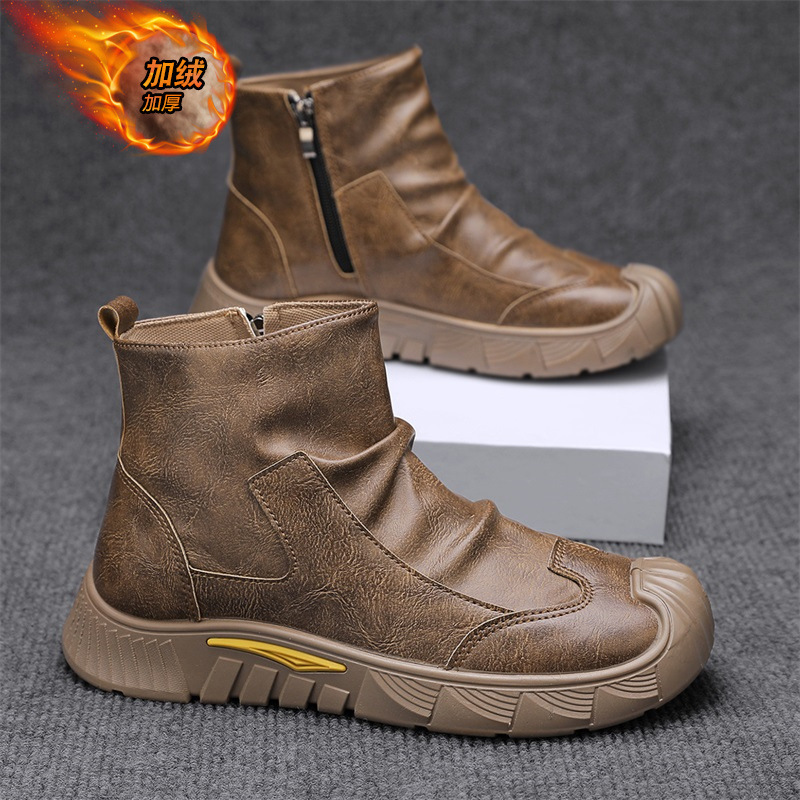 冬の男性靴とベルベットの高い靴の男性のファッションは厚い底の工装靴を厚くして保温綿靴の労働保護靴の男性を助ける