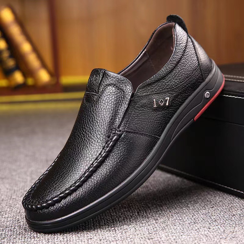 冬の革靴男本革中年カジュアルシューズ40中高年50父靴60歳老人ソフト底滑り止め靴