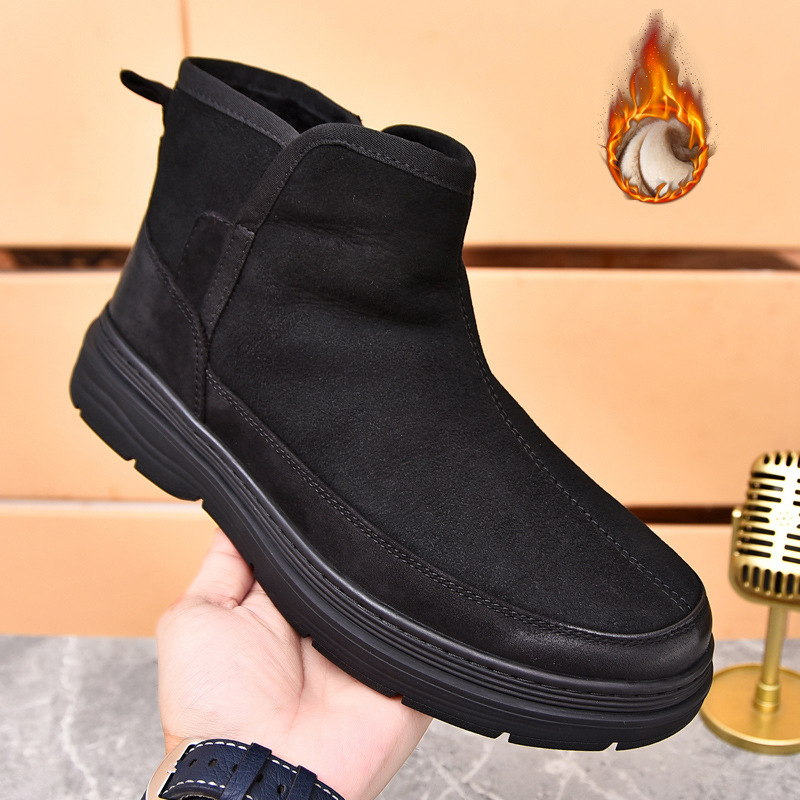 冬のベルベット保温綿靴男一足ブーツ百合男靴黒雪地靴短筒防寒靴