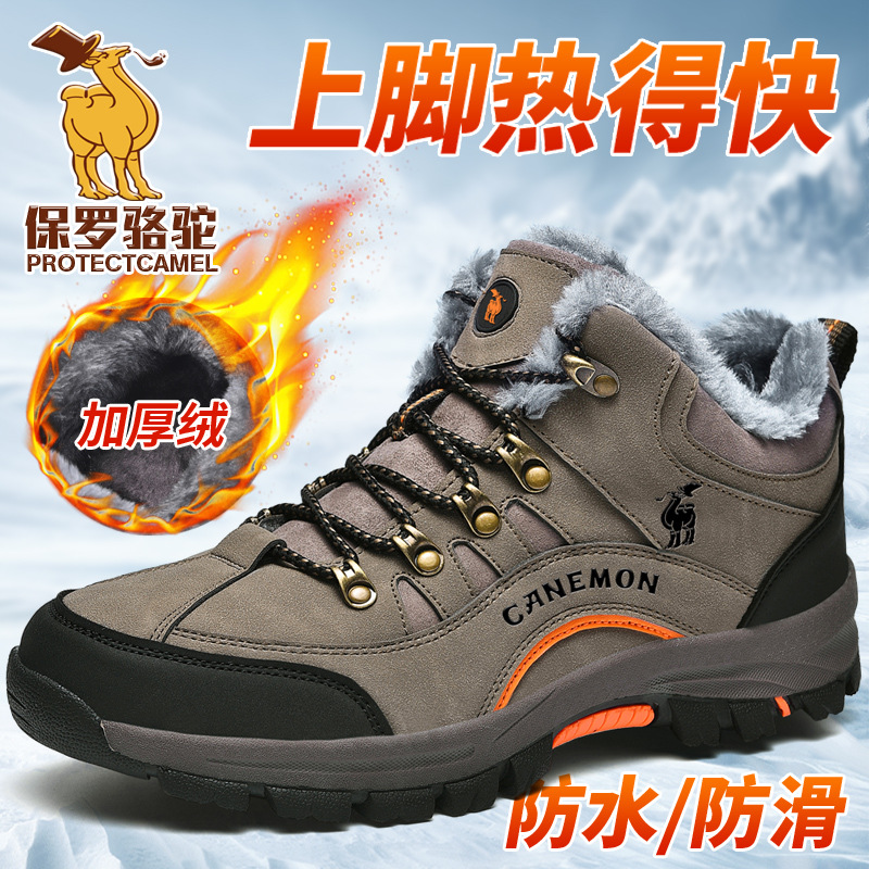 ナビゲートラクダとベルベットの高い綿靴冬の屋外保温雪地靴滑り止めスキー靴と厚い綿靴男