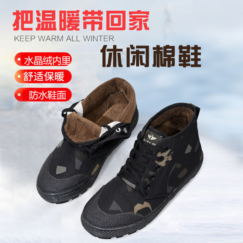 征峰加毛解放靴綿靴冬保温ゴム靴工事現場屋外滑り止め防寒迷彩綿靴冷凍庫靴