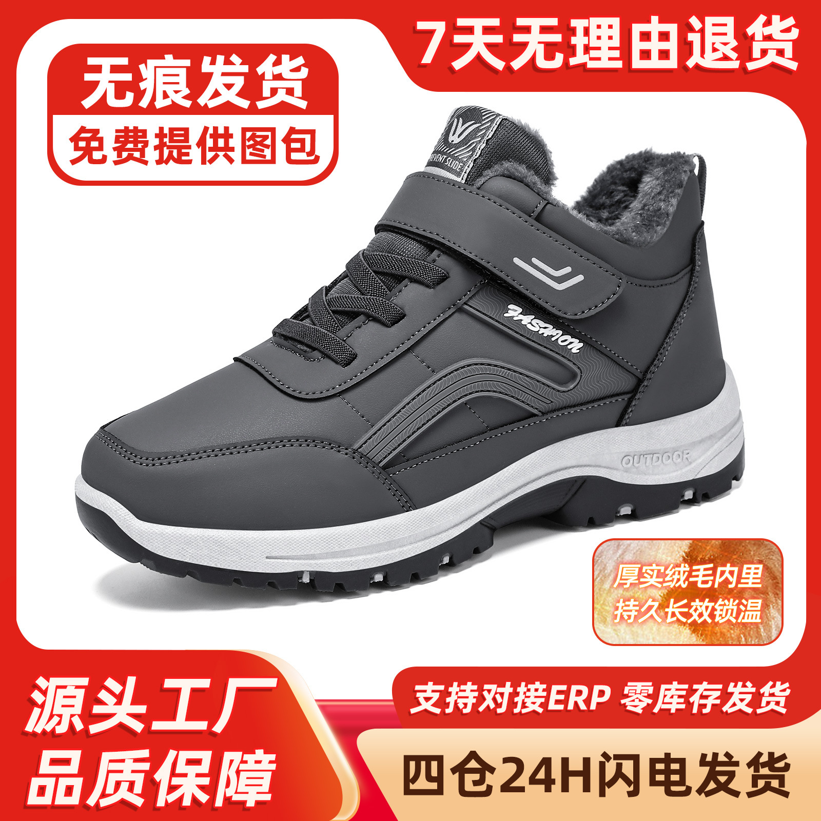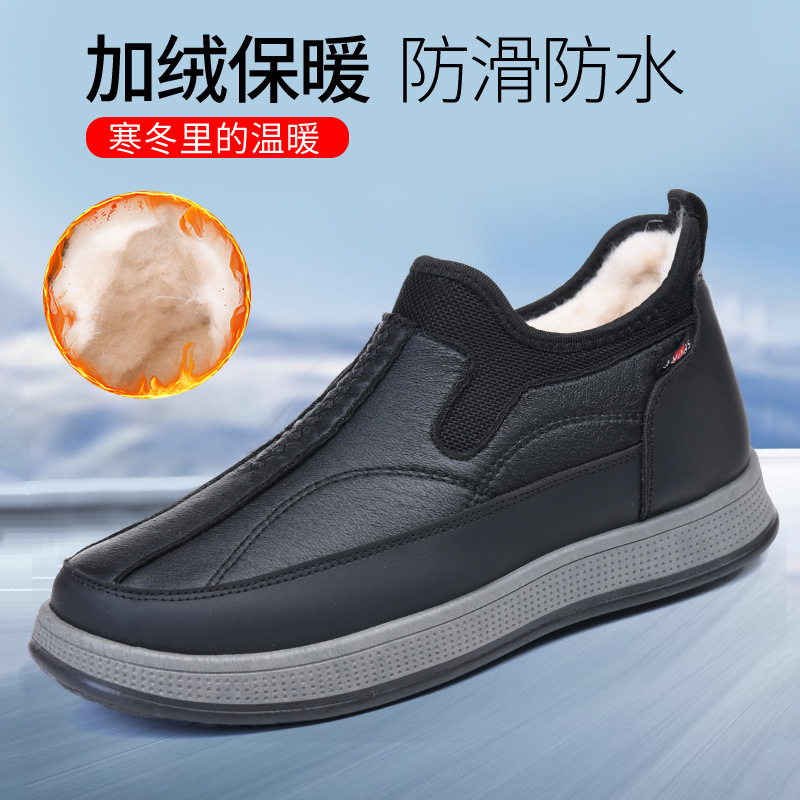 冬のベルベットは皮面防水綿靴男性滑り止めカジュアル靴保温老人靴雪地靴男靴