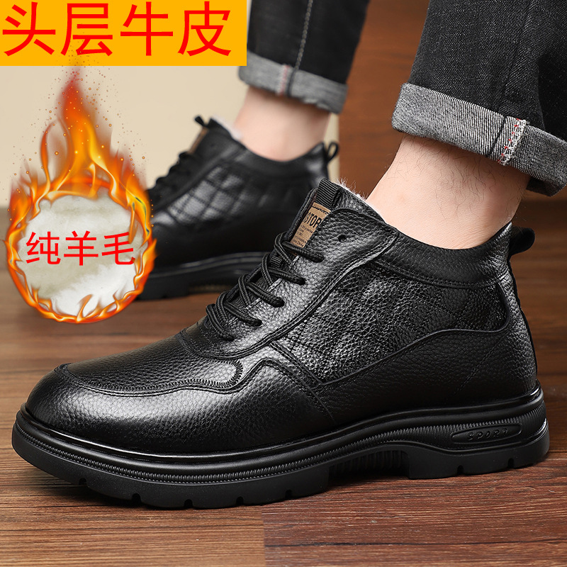 【100% 全牛革】革靴男性本革ビジネス冬ベルベット牛革カジュアル滑り止め中高年お父さん靴