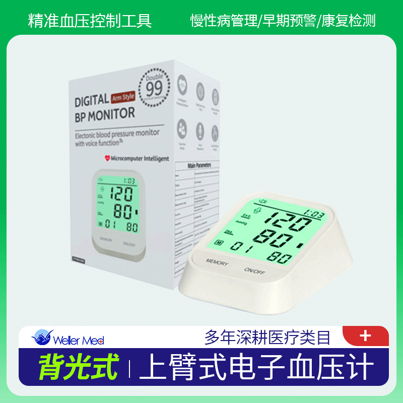 対外貿易輸出三色バックライトスクリーン上腕式音声放送電子血圧計家庭用血圧モニター
