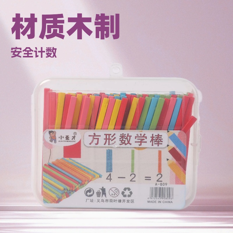 方形の数の棒の箱の中の100本の数学の算数の棒の1学年の加減算の計数の棒の幼児の数学の教具