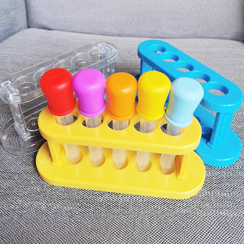 科学教育用子供DIY青色プラスチック試験管スタンド、プラスチック試験管付き、子供用レインボーウォーター実験器具試験管スタンド