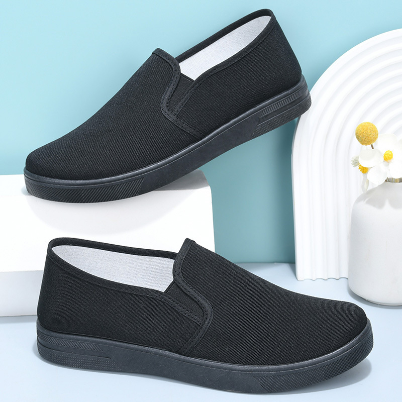 2025 新しい古い北京布靴女性の卸売カジュアルダンスフラットシューズホテルママノンスリップ通気性黒布靴