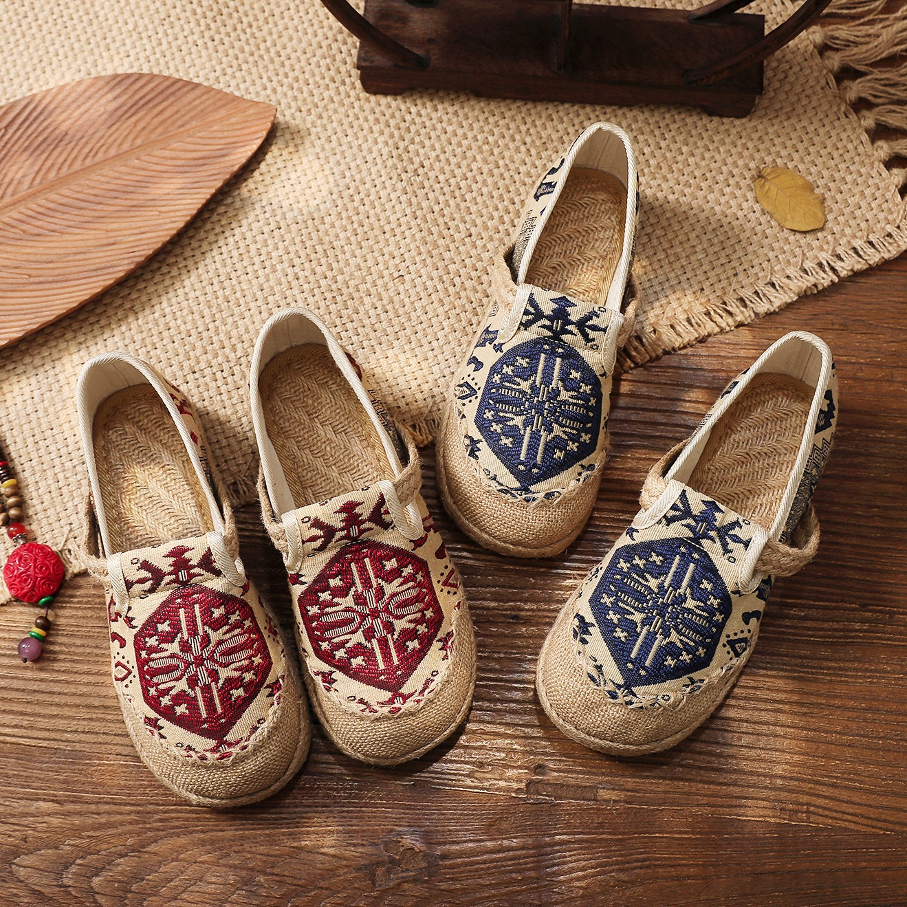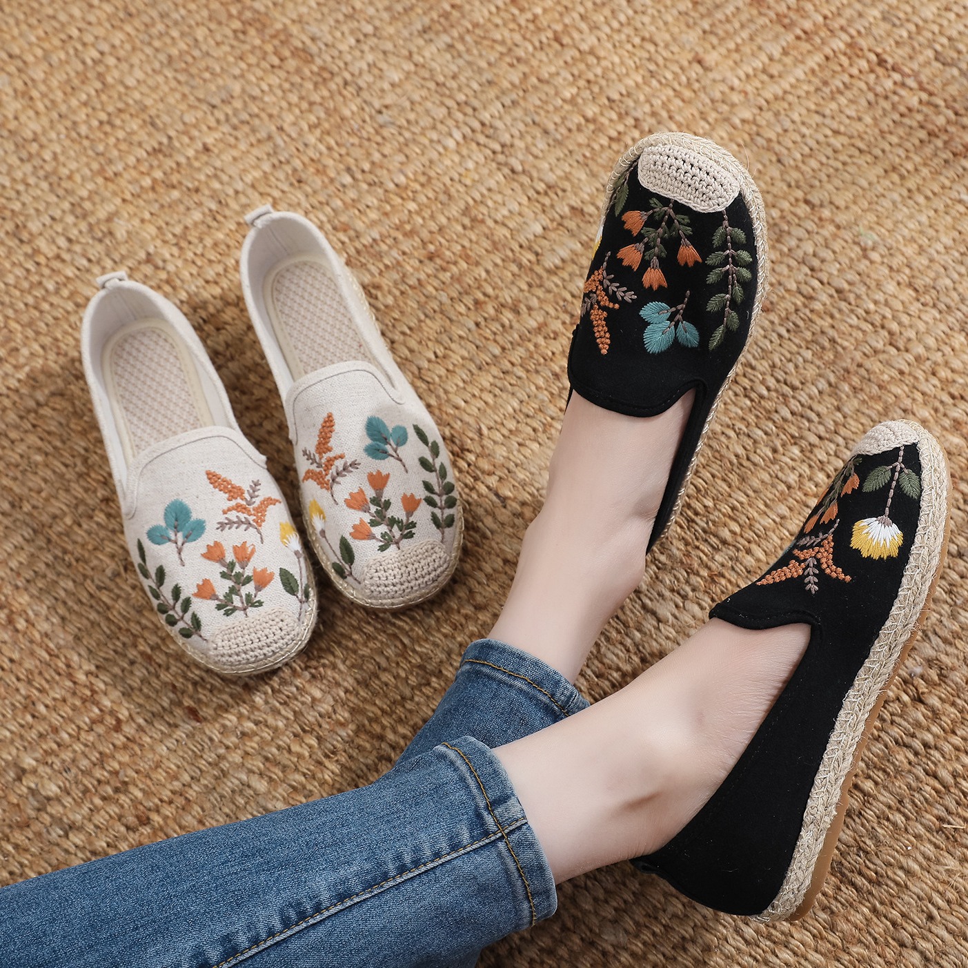 台湾芸の新型民族風刺繍靴の平底のレトロな亜麻のカジュアルな女性靴のシンプルな通気性の縫い目の漁師靴