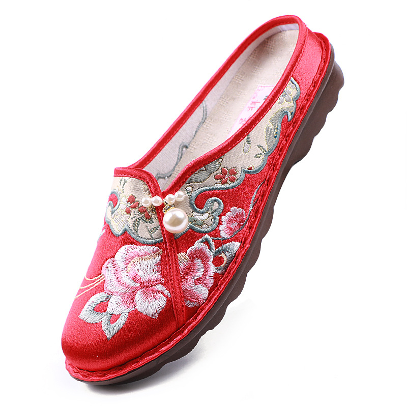 出荷済みのウェディングシューズ、刺繍スリッパ、エスニックスタイルのソフトソールレディース刺繍シューズ、古い北京布靴、レディースシングルシューズ、通気性