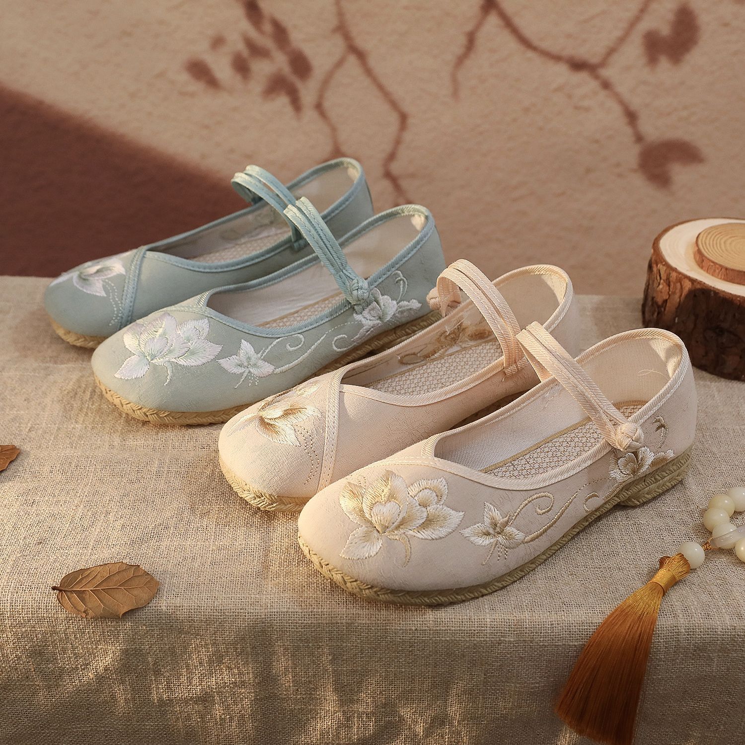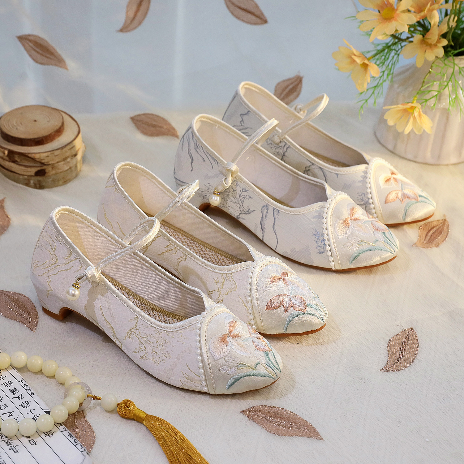 晁雅2025年新型低ヒールチャイナドレス漢服靴民族風バックル靴シンプルな刺繍靴
