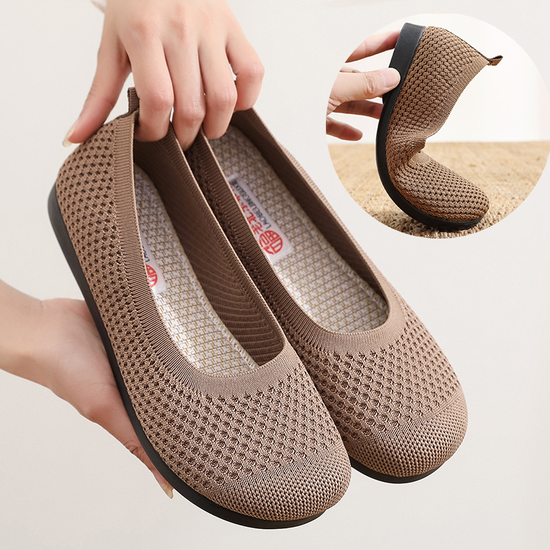 お母さんの靴の女性の夏の新型の柔らかい底の滑り止めの透かし彫りのネットの靴は飛んで平底の健歩を編んで足で古い北京の布の靴を漕ぎます。
