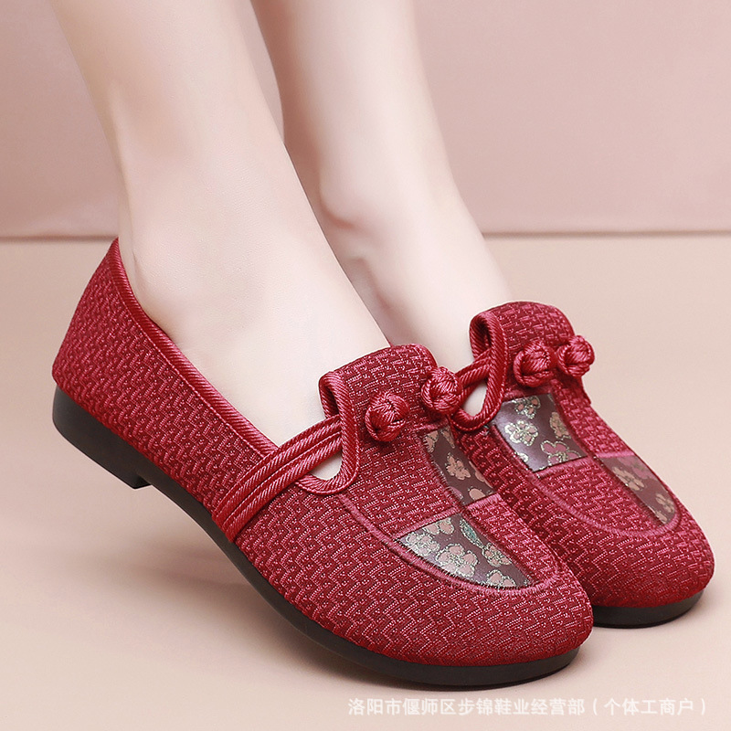 小花柄ママシューズ、柔らかい靴底で快適で通気性があり、中高年女性向けの滑り止めシングルシューズ、女性用老北京布靴、足が疲れにくい