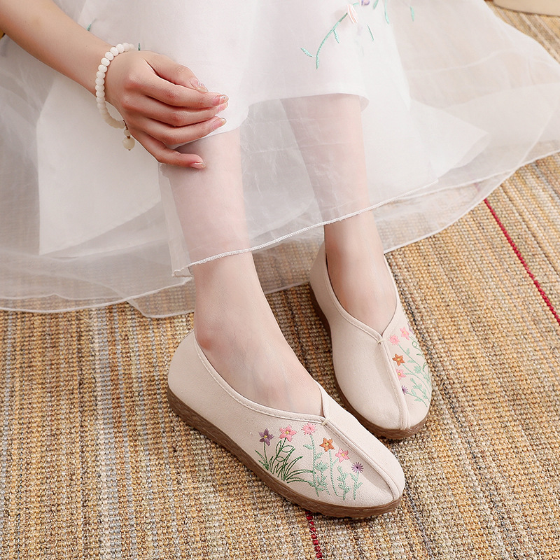 刺繍靴スリッパ秋の新型国風復古快適平靴刺繍老北京布靴靴女