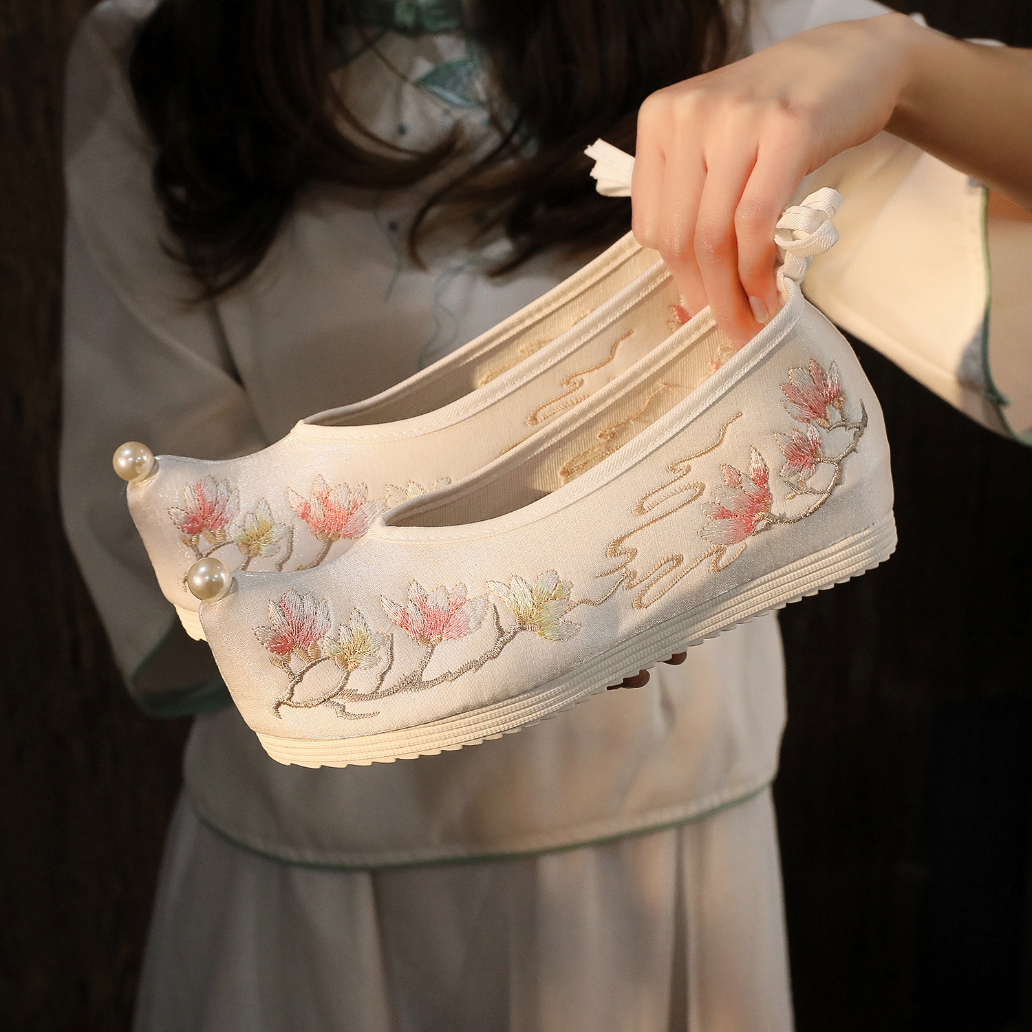 【花海】春の新作の漢服の靴の女性の古風な時代の服装は刺繍の靴の女性の明制の内で高くなる靴を配合します。