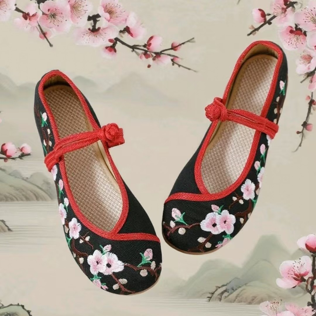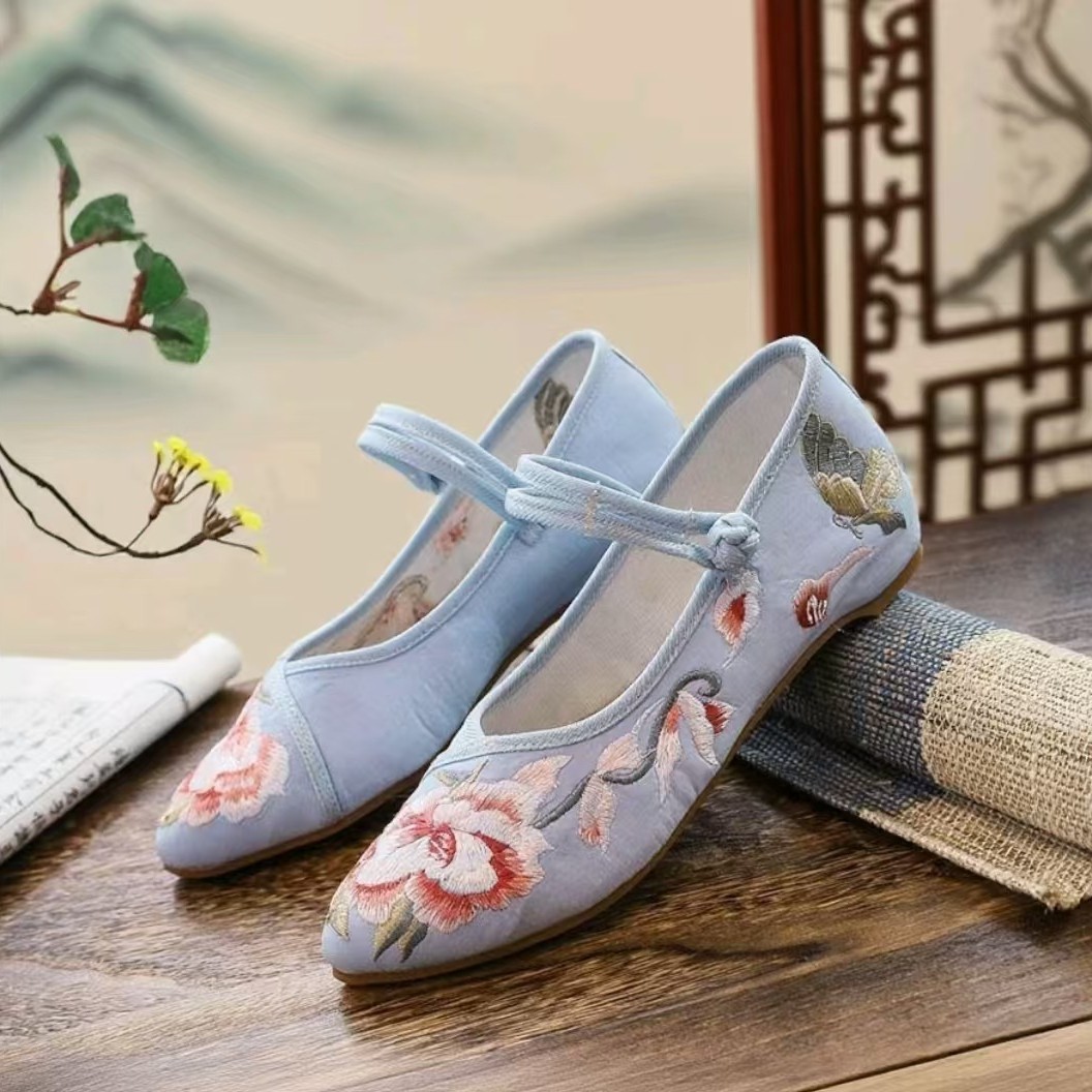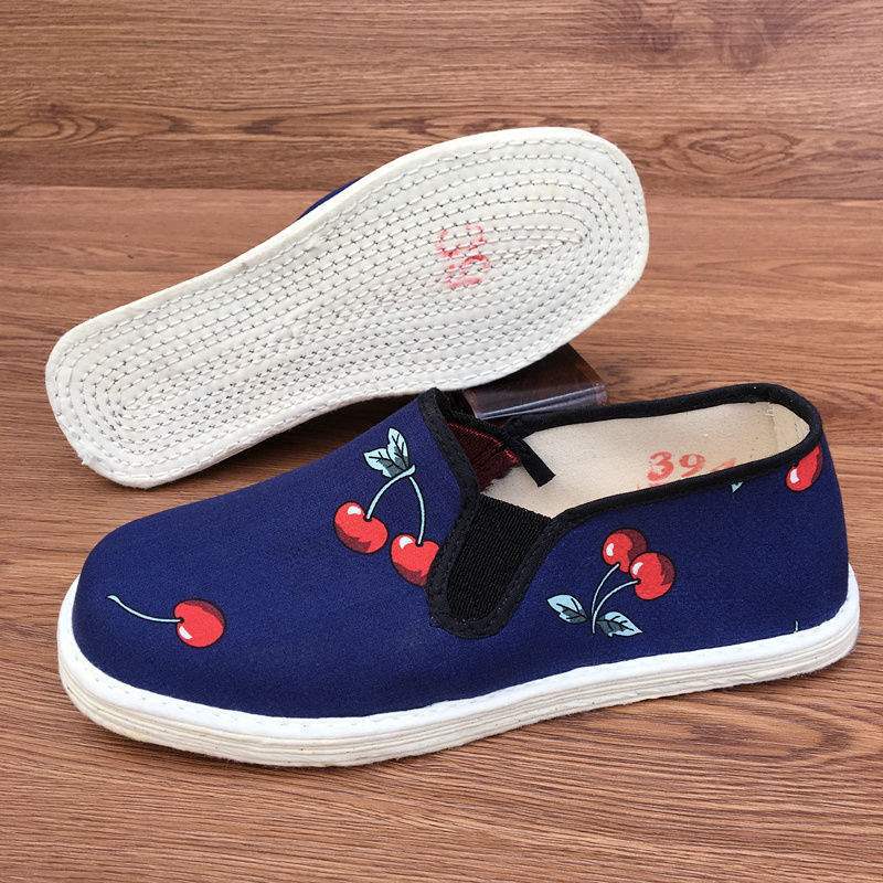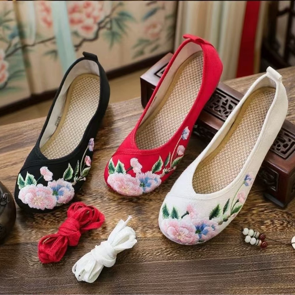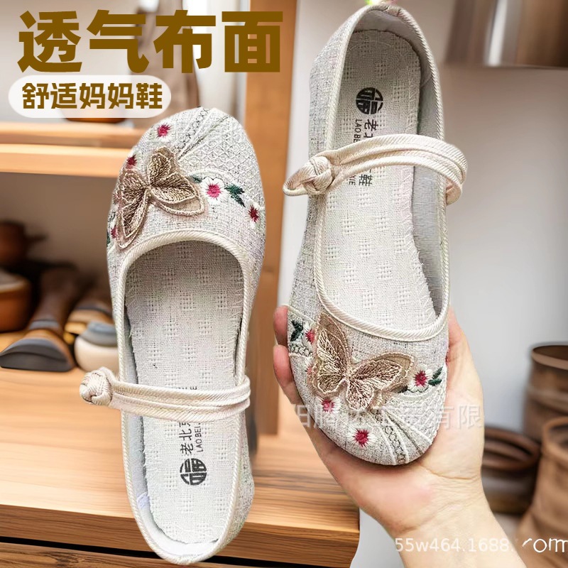 古い北京布靴、女性用通気性漢服靴、平底ソフトソールエスニック刺繍靴、女性用快適な布靴、母親の靴