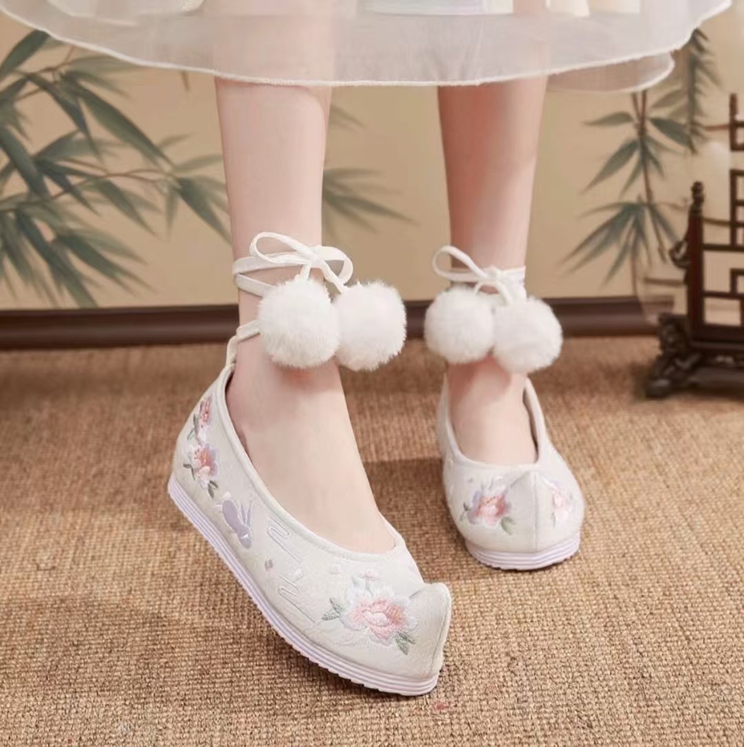 弓の靴の漢服の靴の靴の靴/綿の靴は毛玉の刺繍の布の靴を掛けます。